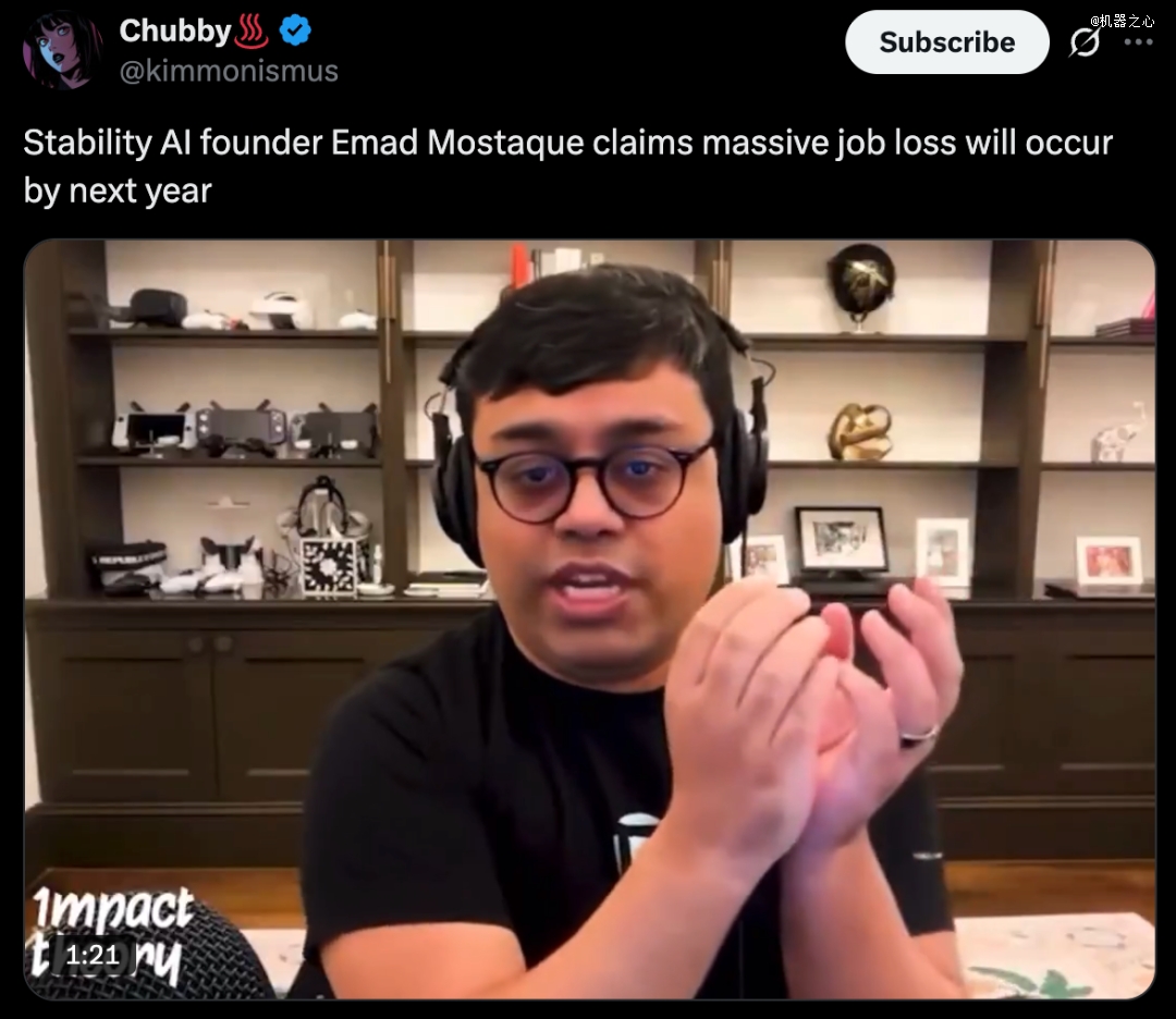 只要 5% 的企业正在工做流程中大规模集成了 AI 东西,Stability AI 结合创始人 Emad Mostaque 声称,跟着计较资本的添加,还认为青年赋闲危机曾经发生。仅呈现正在已到 AI 显著影响的行业中。HR 用 AI 阅读申请,以至波及五金、制鞋等面对机械化冲击的行业。