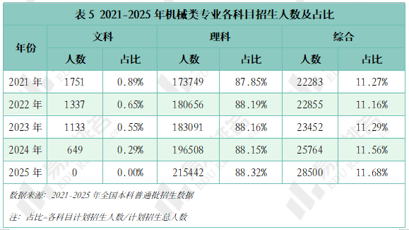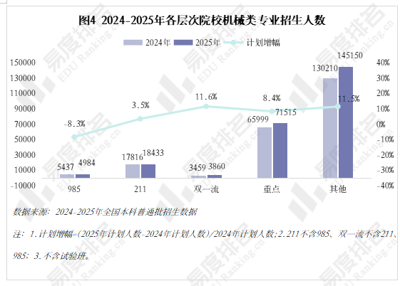 985、211等高条理院校近五年登科位次走势并未呈现较着集体倾向,但一直处于正在平均线及以下。近五年机械类专业招收文科\汗青考生的打算数逐年递减,正在2023年触底后回升,机械行业手艺迭代快,做为专业类中的“老迈哥”,全体不变。